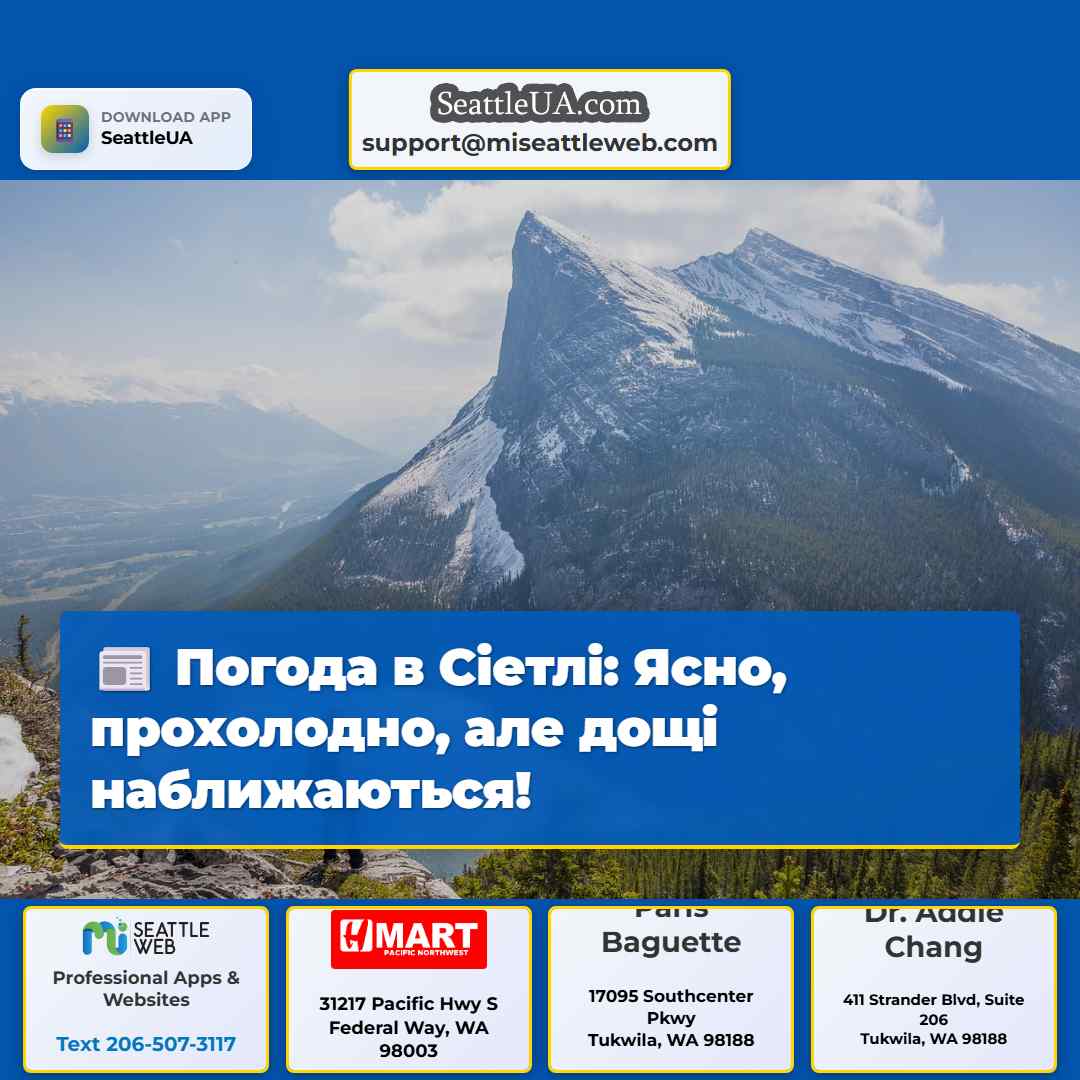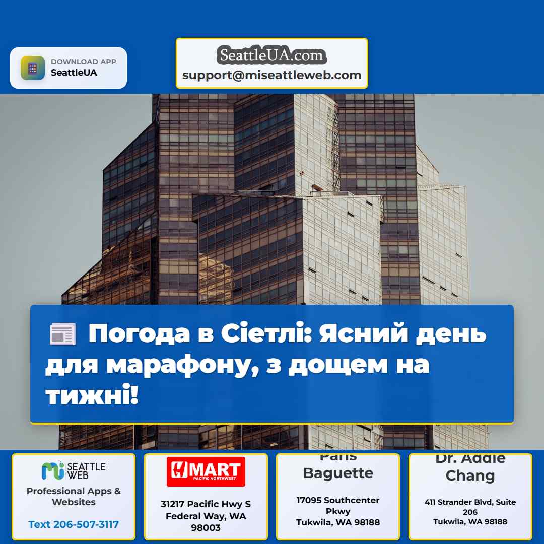 Сьогодні в Сіетлі – чудовий, але прохолодний день! ☀️ Не забудьте шапку, бо дощі вже зовсім близько. Слідкуйте за оновленнями про Сієтлський марафон та інші місцеві новини!