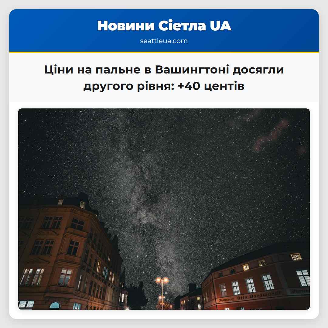 Ціни на пальне в Вашингтоні зросли на 40 центів! Другий найвищий рівень у країні. Рекомендуємо планувати дороги з урахуванням високих витрат.