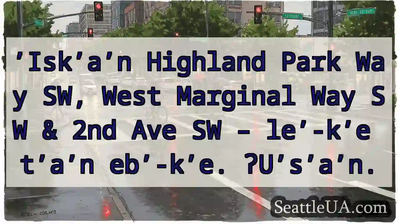 ʼIskʼaʼn Highland Park Way SW, West Marginal Way SW & 2nd Ave SW – leʼ-kʼe tʼaʼn ebʼ-kʼe. ʔUʼsʼaʼn.