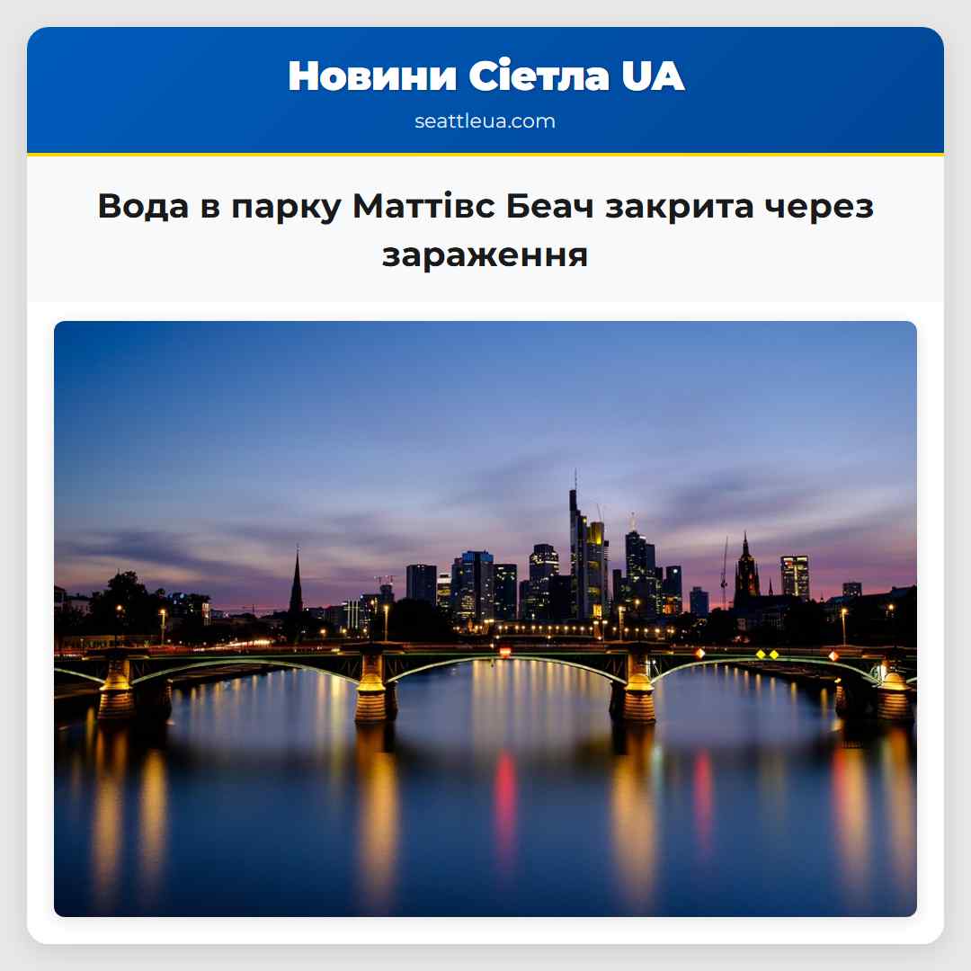 У Сіетлі оголосили про закриття води в парку Маттівс Беач через виявлення зараження. Відвідування парку відмовлено до 19:30 4 квітня. Сіетлські парки повідомили, що зараження розглядається Сіетлськими комунальними службами. Для отримання додаткової інформації рекомендують звернутися до комунальних служб Сіетла. Слідкуйте за Джейсоном Сютічем на X. Надішліть новини тут.
