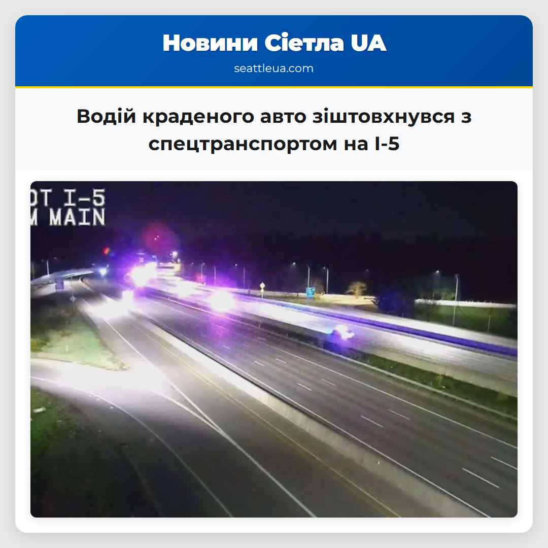 поділитися в твіттері: Водій краденого автомобіля зіштовхнувся зі спеціалізованим транспортом на I-5 у Пієрс-Каунті