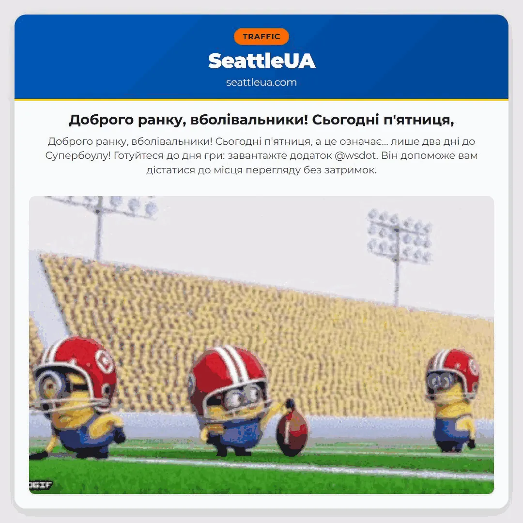 Готуйтеся до дня гри: завантажте додаток @wsdot. Він допоможе вам дістатися до місця перегляду без затримок.