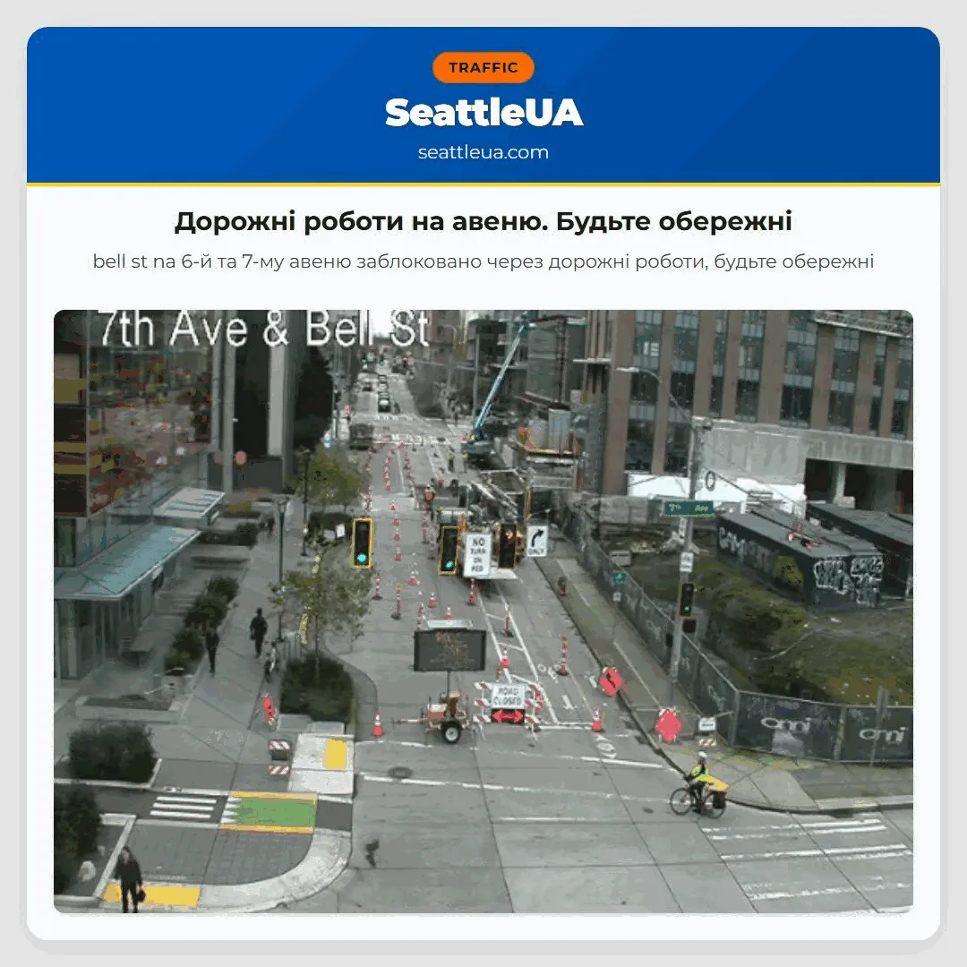 04.02.2026 09:34 Як пересуватися Сіетлом Дорожні роботи на авеню. Будьте обережні Дорожні роботи на авеню. Будьте обережні bell st na 6-й та 7-му авеню заблоковано через дорожні роботи, будьте обережні Останні новини Дорожні роботи на авеню. Будьте обережні [Mukilteo-Clinton] Muk/Clin – Оновлення – Обслуговування одним [I-5] HOV закрито біля Boeing. Будьте обережні. [SR-99 NB] На SR 99 у північному та південному напрямку на [I-90 EB] Kolizja na I-90. Ruch zablokowany. [US-2] Uwaga! Prawo pas ruchu zamknięty. [SR-522] Правий шлях закритий. Очікування до 14:00. Jasne w Rainier Ave S i Massachusetts St Kolizja na Rainier Ave S i Massachusetts St. [I-405 NB] Kolizja na I-405 NB