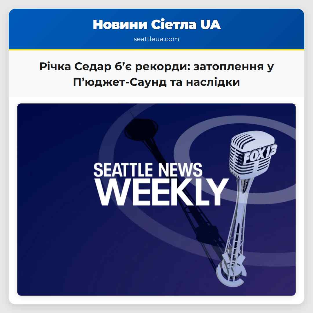 У новому випуску подкасту «Seattle News Weekly» ведучі Меттью Сміт та метеоролог Еббі Акоун детально розповідають про ситуацію із затопленням у затоці П’юджет-Саунд, зокрема про рекордний рівень води в річці Седар, що знаходиться у Рентоні. Еббі Акоун надає інформацію з місця подій, пояснюючи причини унікального атмосферного явища та розповідаючи про те, як громади західної Вашингтоні реагують на стихійне лихо.