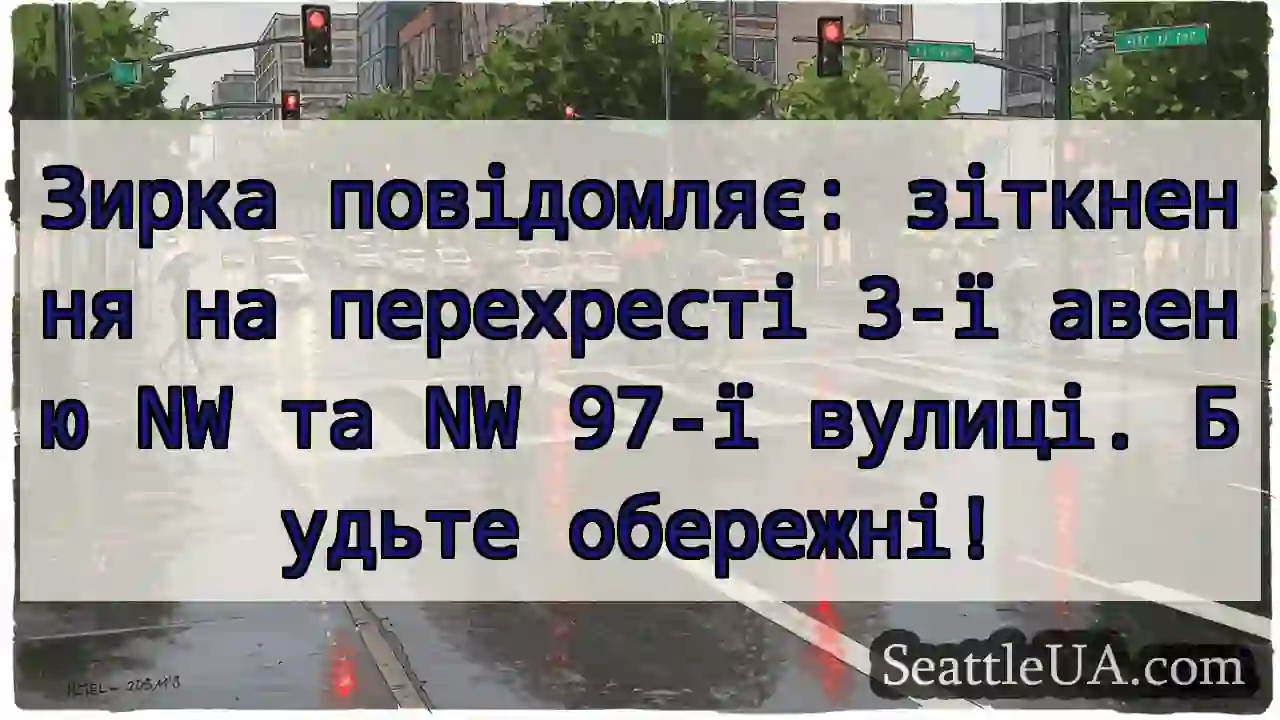 Зирка повідомляє: зіткнення на перехресті 3-ї авеню NW та NW 97-ї вулиці. Будьте обережні!