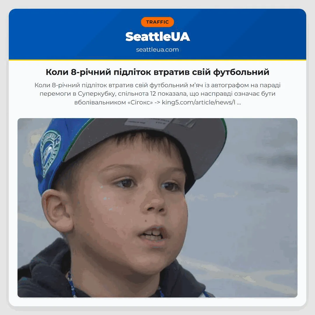 Коли 8-річний підліток втратив свій футбольний м’яч із автографом на параді перемоги в Суперкубку, спільнота 12 показала, що насправді означає бути вболівальником «Сігокс» ->