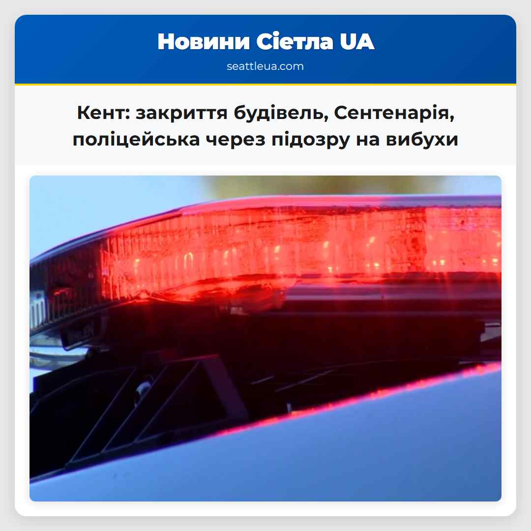 У місті Кент через підозру на використання взрывної зброї закриті будівлі міської ради, Будівля Сентенарія та поліцейська станція. Поліція міста проводить розслідування після виявлення збройного засобу на території міської ради. Усі об’єкти, розташовані на вул. 4-го Авеню, будинок 220, перебувають у закритому режимі. Також закрита вул. Вест Гоу між 4-ю та 2-ю Авеню. На місце події виїхала бомбозній група поліції. Місцеві жителі рекомендують уникати зазначеного району до повної розслідування.