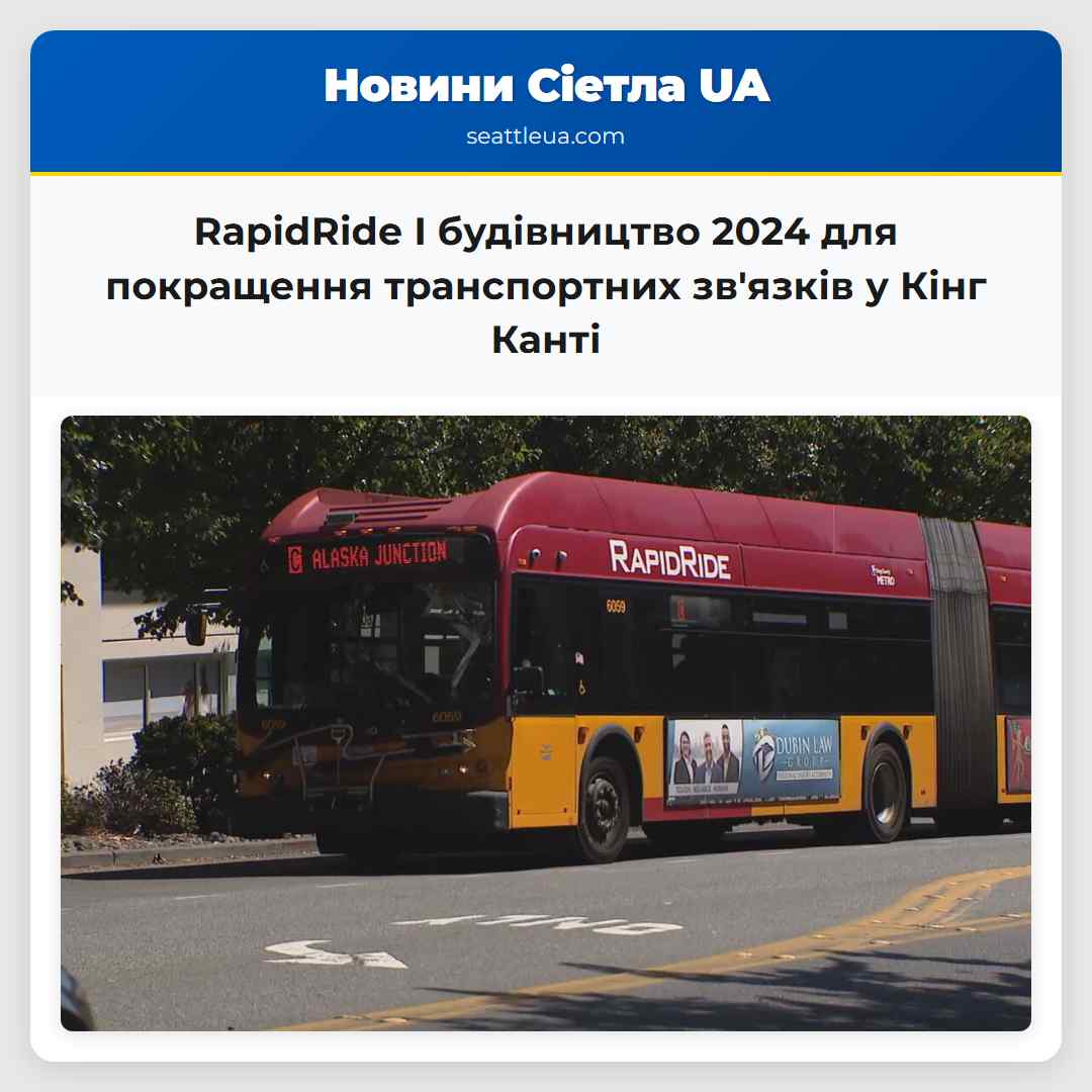 Нова лінія RapidRide I почне будівництво наступного року для покращення транспортних звязків на