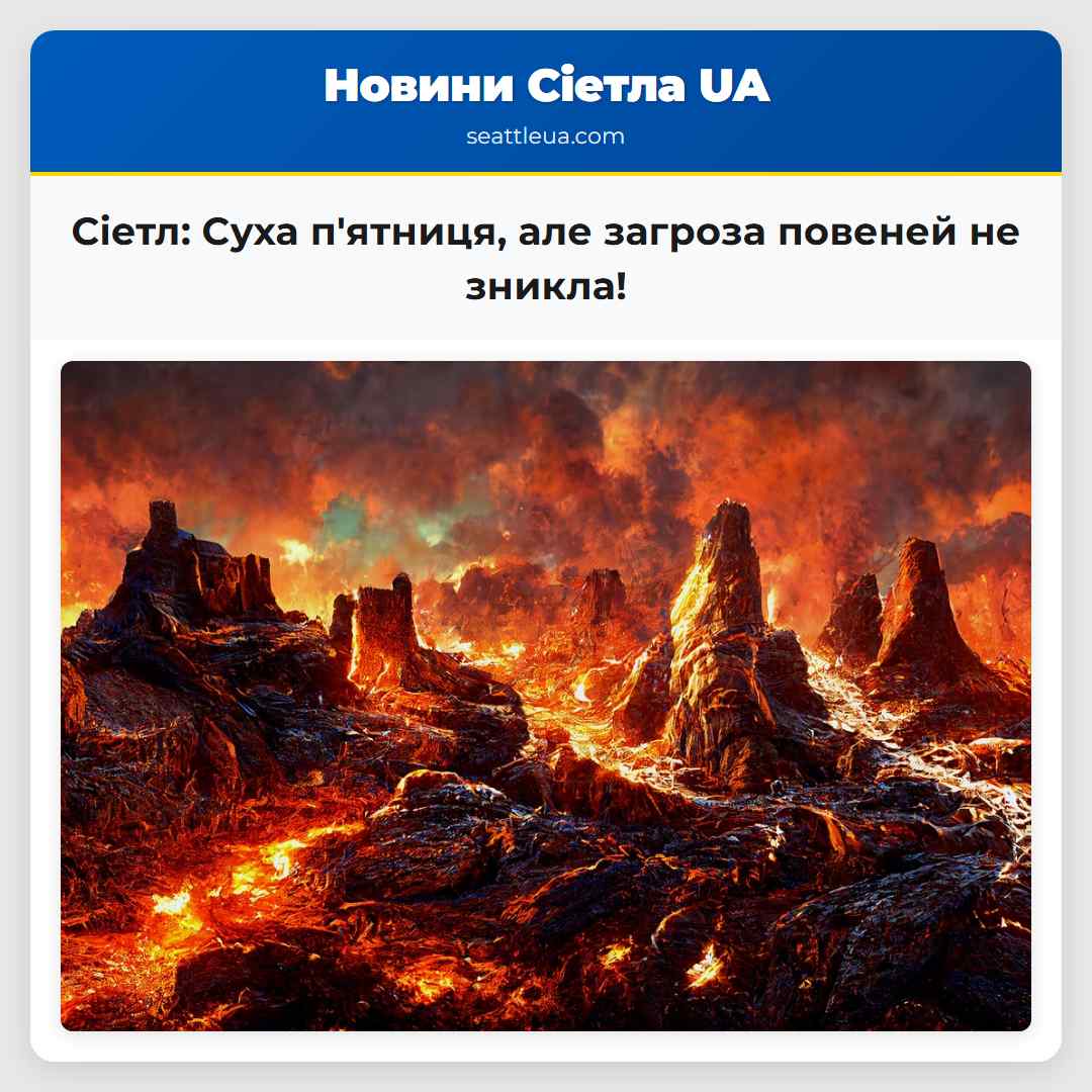 СІАТЛ – Рівень води в річках залишається високим після сильних злив, що пройшли у четвер, хоча опадів поменшало. Для району Маунт-Вернон (на північ від Сіетла, приблизно за 80 км) діє попередження про раптові повені через ризик прориву місцевих дамб, який зберігається до п’ятниці вдень. Це означає потенційну небезпеку швидкого затоплення, якщо дамби не впораються з поточним навантаженням.