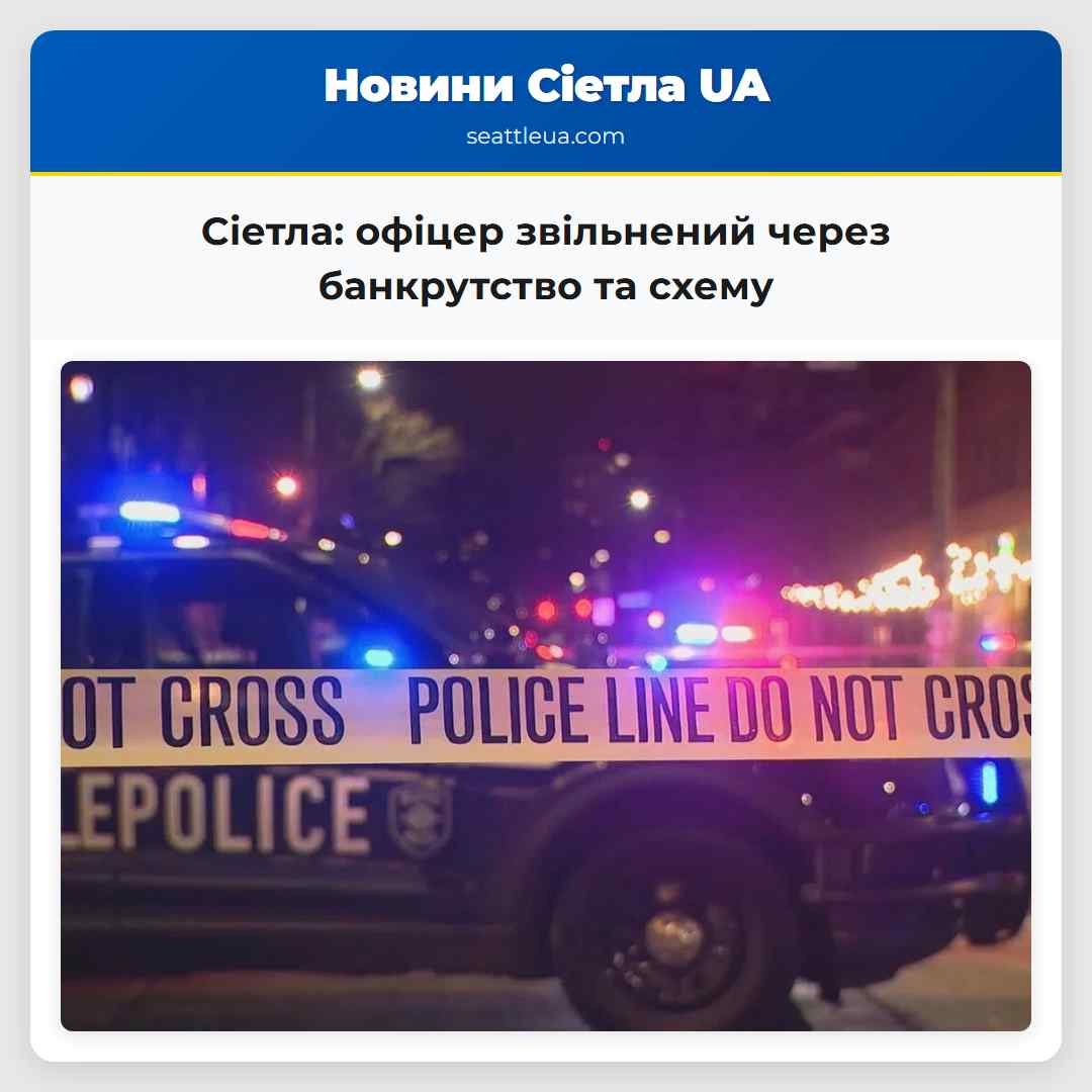 Поліція Сіетла звільнила офіцера через порушення внутрішніх правил, пов’язаних з чесністю, професіоналізмом та дотриманням закону, які виникли через його поведінку під час особистого банкрутства та проваленої інвестиційної ініціативи. Про це повідомляє дисциплінарний підсумок. Звільнення відбулося після розслідування, яке розглядало звинувачення у зловмисному використанні інвесторів, пов’язаних з проєктом реконструкції будинку, перед прийняттям офіцером праці в поліцію, а також неправдиві заяви у документах про банкрутство. Директорка Офіції поліції Сіетла Бонні Гленн визнала три звинувачення, зазначаючи, що він порушив стандартні вимоги до співробітників. Дисциплінарна міра – звільнення – була визначена в закритому підсумку випадку, опублікованому 18 вересня 2025 року. Офіцер був прийнятий у поліцію в березні 2020 року. Звинувачення стосувалися подій 2019 року, коли він заявив про інвестування 30 000 доларів у нерухомість, яке ніколи не було повернено. Його звинувачали у створенні Понзі-схеми. Кримінальне розслідування було передано в Офіцію прокурора Кінг Конті, але в квітні 2023 року прокурор відмовився від звинувачень через відсутність доказів. Проте фінансові процедури банкрутства відіграли ключову роль у вирішенні адміністративного випадку. Банкрутство було відкрите в 2021 році, а суд відмовився від видачі відмови від зобов’язань у 2023 році. Апеляційна панель підтвердила рішення в 2024 році, а апеляційна скасування у відділі Новий Схід була відмовлена в 2025 році. Розслідування включало аналіз фінансових записів та документів про банкрутство. Випадок почався з повідомлення в серпні 2022 року без арештів.