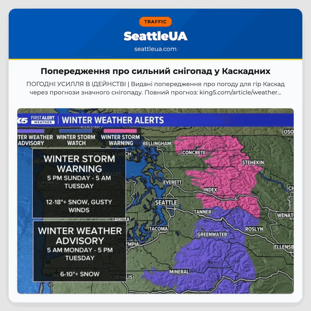 ПОГОДНІ УСИЛЛЯ В ІДЕЙНСТВІ | Видані попередження про погоду для гір Каскад через прогнози значного снігопаду. Повний прогноз: king5.com/article/weather…