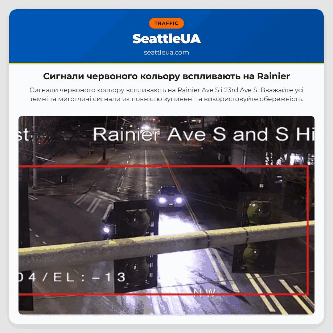 Сигнали червоного кольору вспливають на Rainier Ave S і