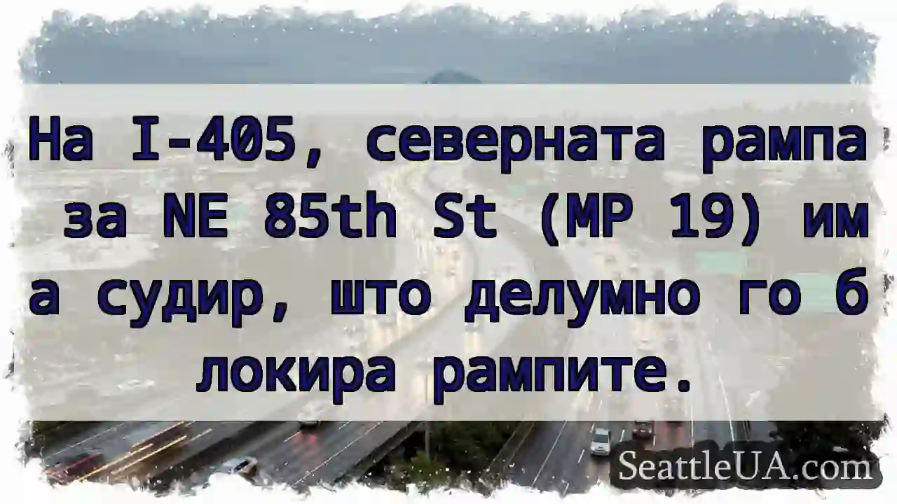 06.12.2025 18:15 Як пересуватися Сіетлом Судир на I-405! Рампата за NE 85th затворена. Судир на I-405! Рампата за NE 85th затворена. На I-405, северната рампа за NE 85th St (MP 19) има судир, што делумно го блокира рампите. Останні новини Зіткнення! Yesler & Broadway. Обережно! Auto tuvāk! Kas tas par skaņu? Ведмідь на Різдвяній Процесії! 🐻 ⚠️ Миготливі сигнали! Обережно! Guantánamo: Padia nuk hidhet poshtë! Трюдо та Перрі: Разом знову? Rukh obmezheno! Vidkrittyi! Шантава Таверна: Закриття! Denny Way & Broad: Rukh zablokovano! Tacoma: 30 хв затримка!