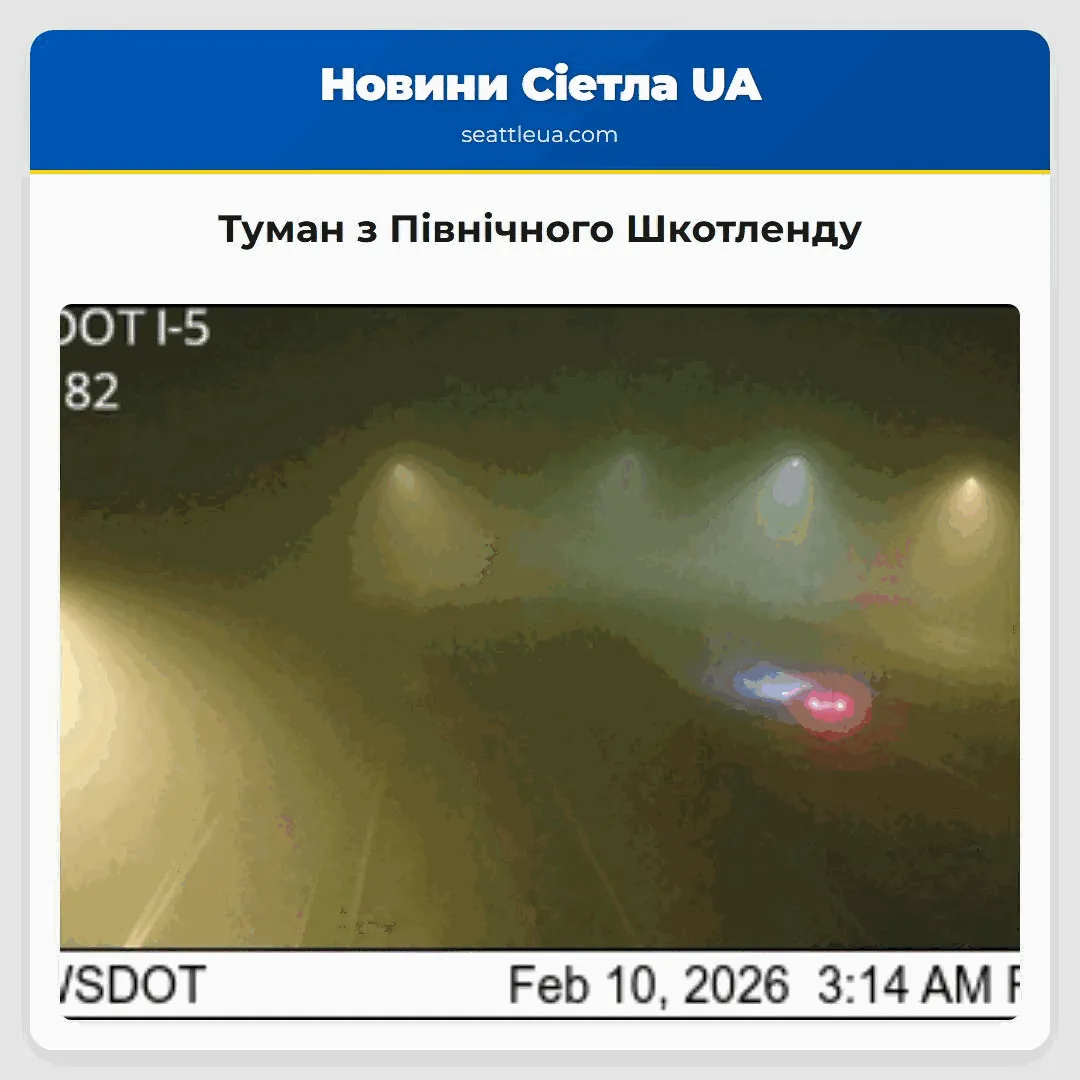 [Туман розробився від частин Північного Шкотленду на етапу I-5 до краю нижнього Чяхаліс та Грейс-Харбор. Подготуйтесь до зменшення або швидко змінюючоїся видимості, якщо ви вийдете рано ураном.]
