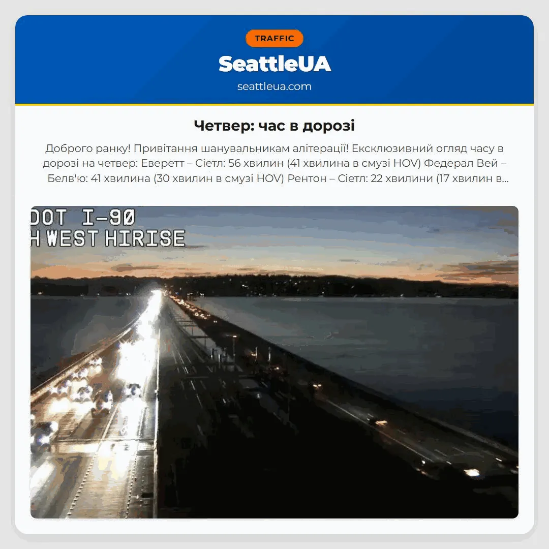 Доброго ранку! Привітання шанувальникам алітерації! Ексклюзивний огляд часу в дорозі на четвер: