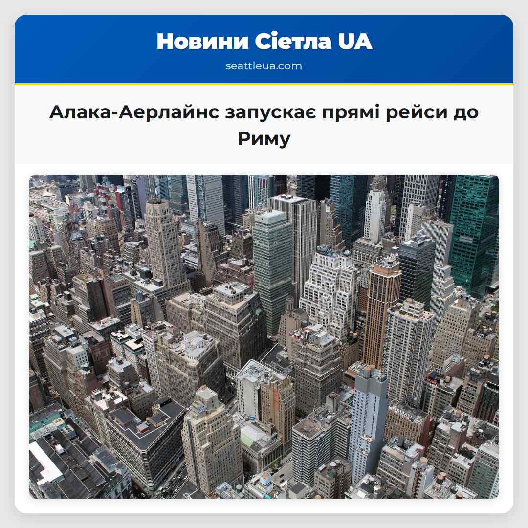 У Сіетлі оголосили про запуск прямих рейсів з міста до Риму. Аеролінія підкреслила, що це перший маршрут такого типу з аеропорту Сіетл-Такома міжнародного (SEA) до аеропорту Леонардо да Вінчі Рим-Фіумічіно (FCO). Маршрут працюватиме сезонно з 28 квітня до 23 жовтня. Ціни на квитки починаються від 618 доларів з 1 квітня до 21 травня, а після цього вони зростають до 1629 доларів і більше, за даними сайту аеролінії станом на 13:30 28 квітня. Рейс відлітає з Сіетла о 17:30 і прибуватиме в Рим о 13:15. Повернення з Риму відбувається о 15:25, а прибуття в Сіетл – о 17:45. ‘Запуск нашого першого рейсу до Європи – це важливий крок у виконанні нашої довгострокової стратегії зростання. Послуга до Риму розширює можливості для пасажирів з’єднуватися з усім світом, підкреслює роль Сіетла як глобального шлюзу, і є можливим завдяки нашим працівникам, які забезпечують безпеку, увагу та високий рівень виконання кожного рейсу. Ідемо вперед!’, – зазначив голова Аеролінії Бен Мінікуцці в прес-релізі.