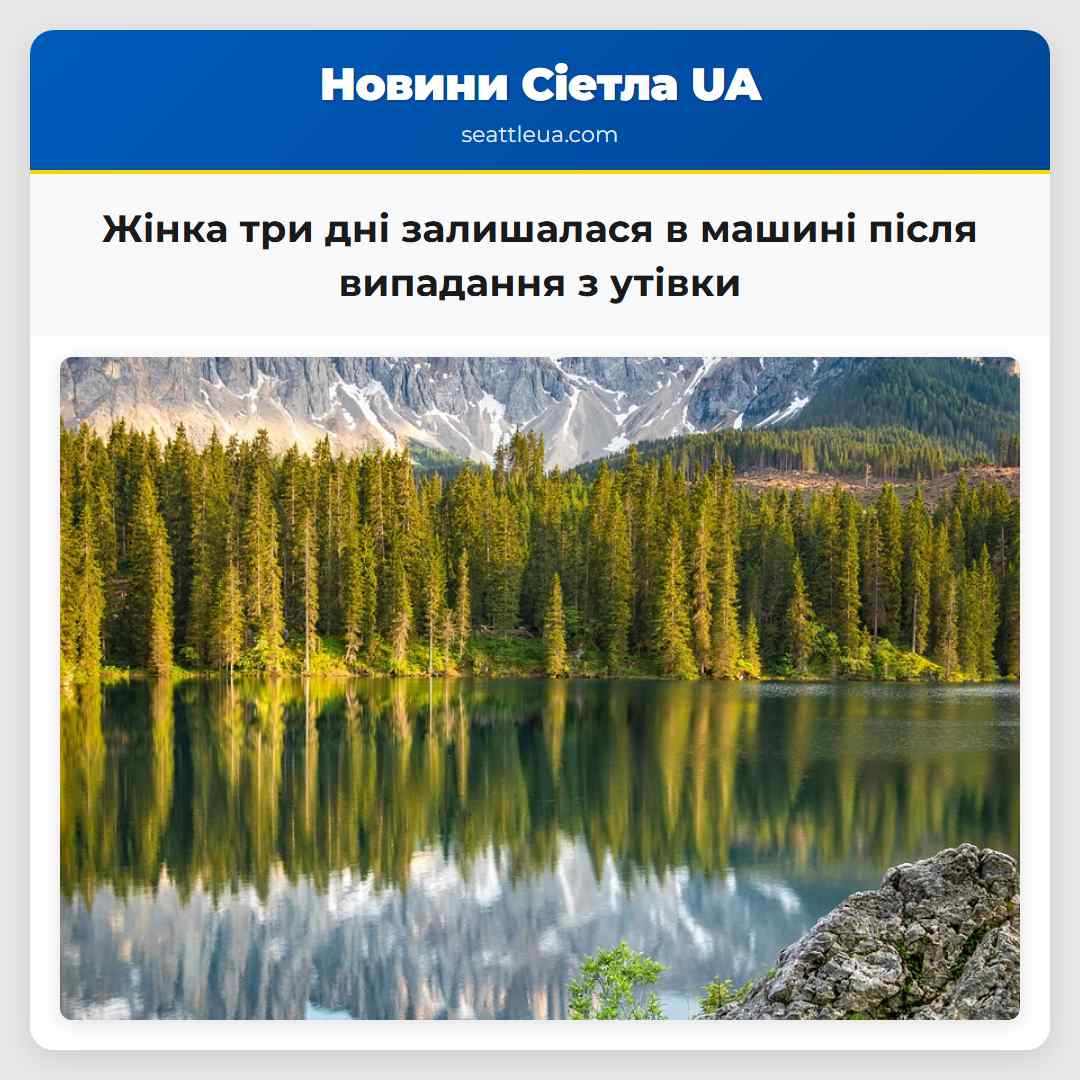 У скагітському районі штату Вашингтон 60-річна жінка повідомила, що три дні залишалася в машині після того, як навмання випала з глибокого утівки. Інцидент відбувся на Чаканют Драйв у неділю. Патрульники штату Вашингтон отримали дзвінок від 911 о 8:30 ранку. Вони повідомили, що жінка змогла включити двигун машини, щоб зарядити телефон і звернутися за допомогою. Її знайшли приблизно на 40 футах внизу, трохи на північ від Бов. Жінка не отримала серйозних травм, але її забрали до лікарні Скагіт Валлі в Маунт Вернн, оскільки патрульники помічали, що вона не мала їжі або води протягом кількох днів.