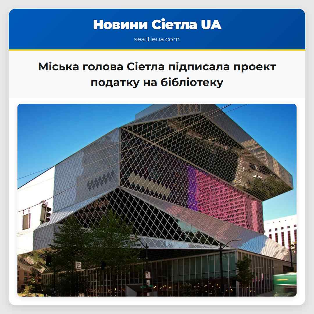 Сіетл. Міська голова Кейті Вілсон підписала проект податку на бібліотеку, який подвоює суму, яку планують отримати від громадян, і відправила його на голосування у серпні. Проект передбачає заміну бібліотечного податку, закінченої у 2019 році, на суму 219 мільйонів доларів. Якщо проект буде затверджений громадянами, новий податок триватиме сім років і становитиме 480 мільйонів доларів. Міська рада Сіетла вже проголосувала про внесення відновлення бібліотечного податку 2026 року на голосування 4 серпня. Міра пройшла через Міську раду Сіетла універсально, перед тим як була підписана Вілсон, що дозволило їй прямо йти на голосування громадян у серпні. За проектом найбільша частина коштів, 229 мільйонів доларів, піде на підтримку годин роботи бібліотек і доступу до них. Ще 134 мільйони доларів виділяться на ремонт будівель, а 38 мільйонів доларів буде використано для фінансування технологій та оновлення інфраструктури. У заяві Вілсон сказала: ‘Підтримуючи цей проект, ми зміцнюємо загальнодоступні відкриті простори, які з’єднують людей і розширюють можливості, творчість та навчання на всю життя у нашому місті’. Пропонований податок оцінюється як збільшення податків на власність на приблизно 19 центів на кожен 1000 доларів оціненої вартості власності у перший рік, що збільшить загальну ставку до 3 доларів на кожен 1000 доларів оціненої вартості власності. Податок з’явиться на голосуванні 4 серпня для громадян Сіетла.