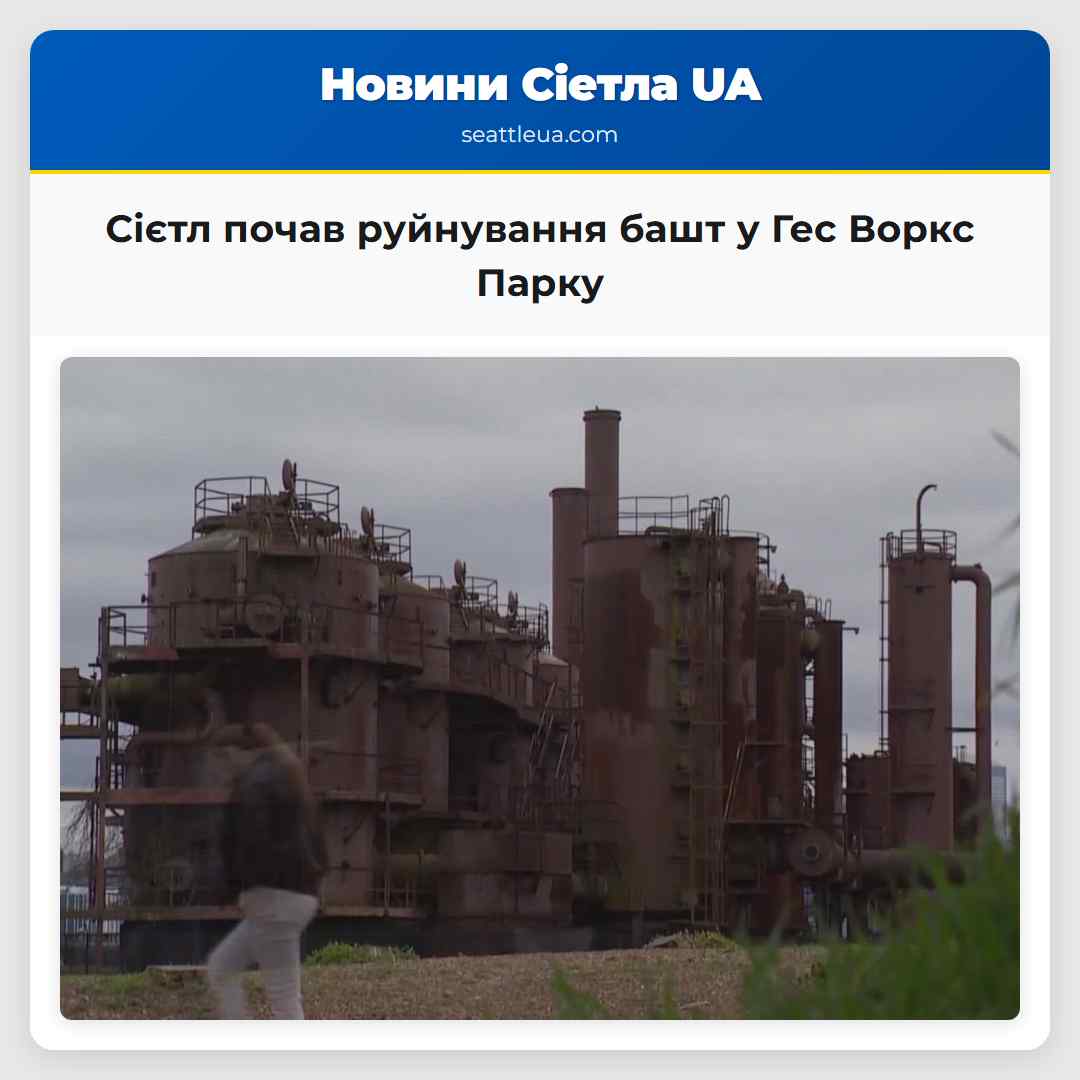 Сієтл почав підготовку до обмеженого руйнування історичних промислових башт у Гес Воркс Парку, повідомив прес-секретар. Прес-секретар Сієтл Парків і рекреації Крістіна Гірш повідомила вівторка, що ‘сьогодні ми починаємо розміщення робіт’, додавши, що робота ще на ранніх етапах і не буде особливо помітною до наступного тижня. Відео Гес Воркс Парку, знятий вівторка, не показувало, що будь-які руйнування ще не почалися, ні було помітно працівників. Проект включає обмежене видалення труб, ходів, сходів і систем підтримки з башт у парку, за даними міста. Структурний інженер, нанятій парками, висновок, що визначені конструкції не мають структурної цілісності, а їх видалення не вплине на стабільність самих башт, повідомив прес-секретар відділу будівництва і контролю Сієтла Брайан Стевенс. Відділ будівництва і контролю подав і отримав наказ про виправлення небезпеки, який вимагає від міста вирішити питання до 15 травня. У відповідь парки подали заявку на частковий дозвіл на руйнування 31 березня і звернулися до комітету з охорони пам’яток 1 квітня. ‘Комітет відкладав своє рішення і повторював свої попередні прохання про більше інформації, яку SPR продовжує не надавати після п’яти засідань з комітетом з листопаду минулого року’, повідомив прес-секретар Historic Seattle. За законом міста, обмежене видалення пам’яток може відбуватися без рішення комітету, якщо це необхідно для вирішення негайних загроз здоров’ю та безпеці та якщо інші варіанти вичерпані, зазначив Стевенс. Активісти вважають, що більшість занепокоєння комітету виникає з його бажання охороняти роботи видатного проектувальника та професора Університету Вашингтона Річарда Хага, який вважається одним із найкращих прикладів ландшафтного проектування архітекторами. Хаг, колишній мешканець Байнбридж Ізланд, який помер у 2018 році, відомий своїми ‘інноваційними рішеннями щодо навколишнього середовища та екології’, зазначив Університет Вашингтона. Він був лауреатом премії президентського нагородження Американського товариства ландшафтних архітекторів за відмінність у проектуванні Гес Воркс Парку. ‘Зберігаючи багато зі структур старого газового заводу, Хаг створив одну з перших постіндустриальних парків, що відзначає індустриальну історію’, пише автор блогу Університету Вашингтона. ‘Під час виступу Хага з пропозицією про парк, суспільство поступово почало цінувати башти заводу як сучасні скульптури. Архітектори по всьому світу визнають Гес Воркс Парк як передовий проект для постіндустриальних парків.’ Дії вівторка відбулися після років подій, пов’язаних з баштами. Опукла справа проти міста зазначає три смерті та принаймні 11 серйозних травм від падінь з 2008 року. Це включає смерть 15-річного Маттієса Джонсона у липні 2025 року, коли він падав приблизно на 50 футів з конструкцій. Його родина подала підконтрольну справу проти міста, аргументуючи, що влада знала, що башти представляли небезпеку, але не діяла. ‘Ви маєте небезпечну привабливість’, сказала адвокат Керрі Коєлер, яка представляє родину. ‘Ця конструкція стара, руйнується і руйнується.’ Дедлайн 15 травня припадає на тижні до того, як місто має вийти в суд у цій справі. Коєлер сказала, що місто діє лише через правовий тиск. ‘Він міг це зробити дуже давно, навіть десятиліття тому,’ сказала вона. ‘Місто тепер нама