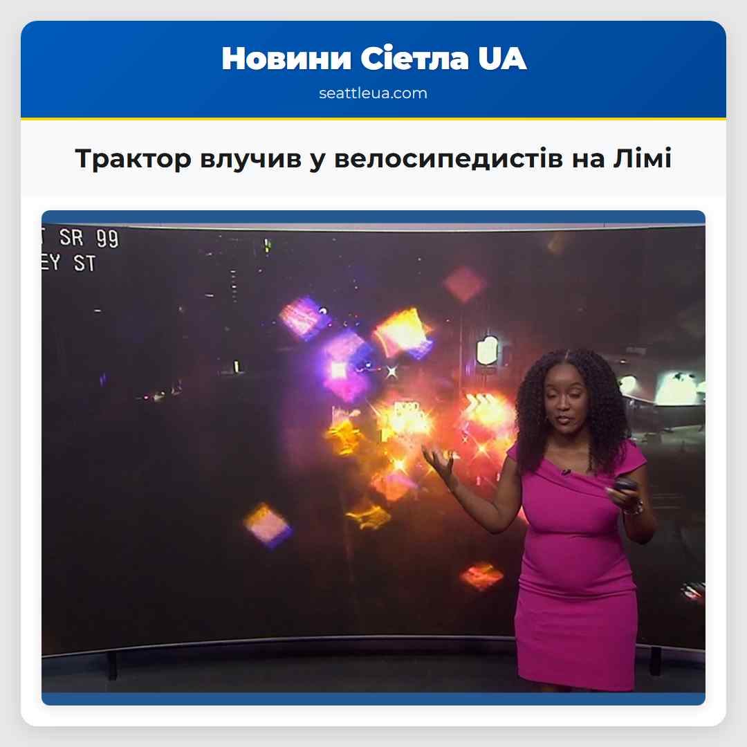 У Сіетлі, в районі Саус Лейк Юніон, вранці вівторка відбулося зіштовхнення між трактором та двома велосипедистами, які рухалися на Лімі по Аурорі. Поліція Сіетла повідомила, що о 4:20 ранку до місця події прибули екіпажі, щоб надати допомогу після зіткнення з двома велосипедистами, які рухалися на схід по вулиці Рой. Два велосипедисти їхали на одному Лімі. Детектив Брайан Прітчард з поліції Сіетла зазначив, що велосипедисти не були відомі з району та вважали, що відкриття Аурори є зміною на тротуар. Третій велосипедист, який рухався на другому Лімі, звернувся на тротуар і не отримав травм, пояснив Прітчард. Водій трактора, який рухався на південь по Аурорі, не побачив велосипедистів і зіштовхнув їх, зазначив Прітчард. Поліція не вважає, що водій був під впливом, і він не розганявся. Водія відпустили з місця події. На місці події медики надали допомогу двом осібам, серед яких жінка 30 років та чоловік 28 років. Обидва були доставлені медиками до медичного центру Харборвію у серйозному стані, за інформацією поліції Сіетла. Дорожній рух відновили о 6:45 ранку.