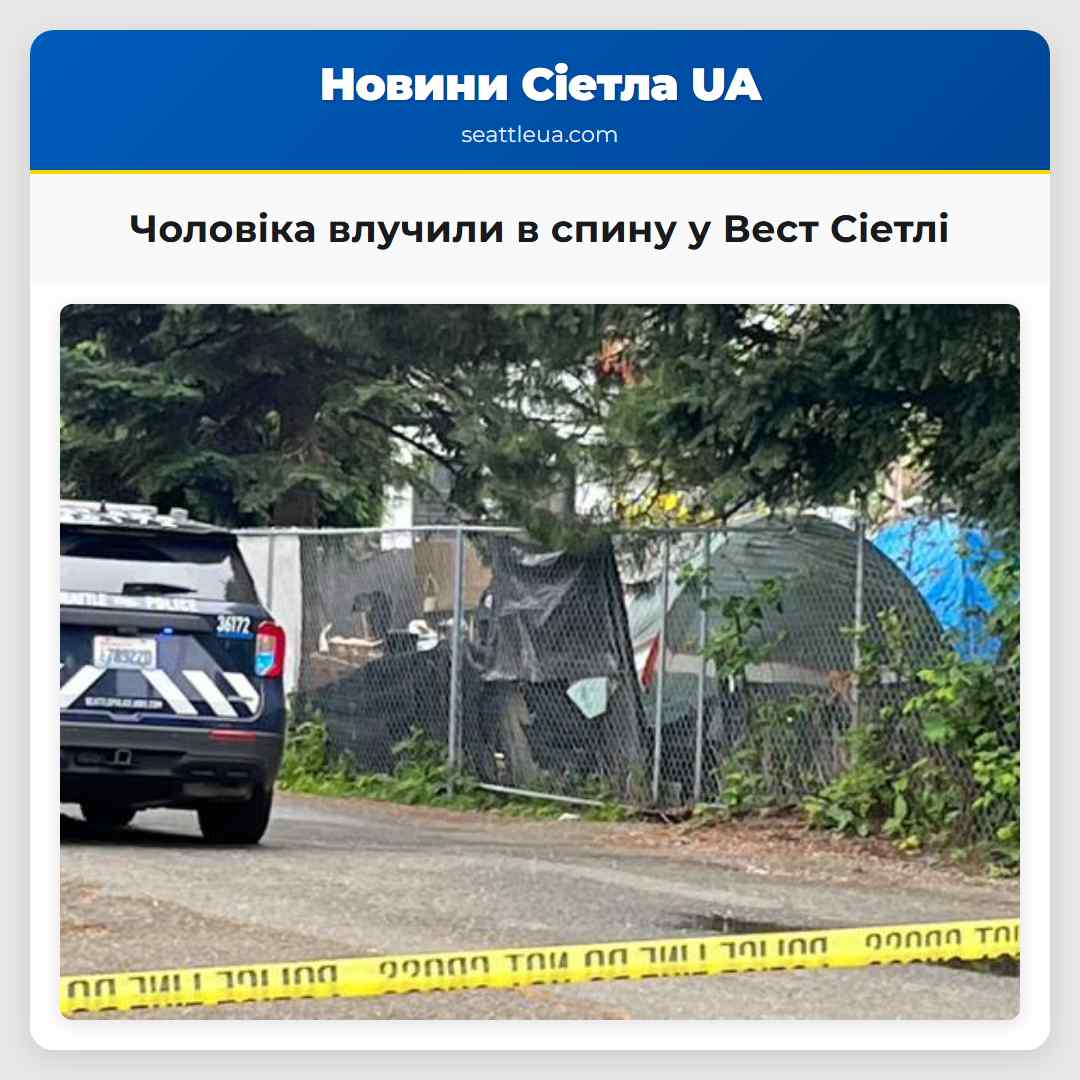 Сіетл. Поліція Сіетла розслідує події після того, як чоловіка знайшли пораненим у спину у понеділок ранком у Вест Сіетлі. За повідомленнями поліції, поранення сталося в спину. Пожежна служба Сіетла надала медичну допомогу чоловікові, якому було приблизно 32 роки. Його госпіталізували у критичному стані для подальшого лікування. Відеозображення, зроблене камеҏою від команди We поблизу Делрідж-вей Східного та 17-го авеню Східного, показує наявність поліції та огорожі з кримінальною лентою поблизу табірного лагеря. Інформація про підозрюваного відсутня. Подія розвивається. Перевіряйте оновлення.
