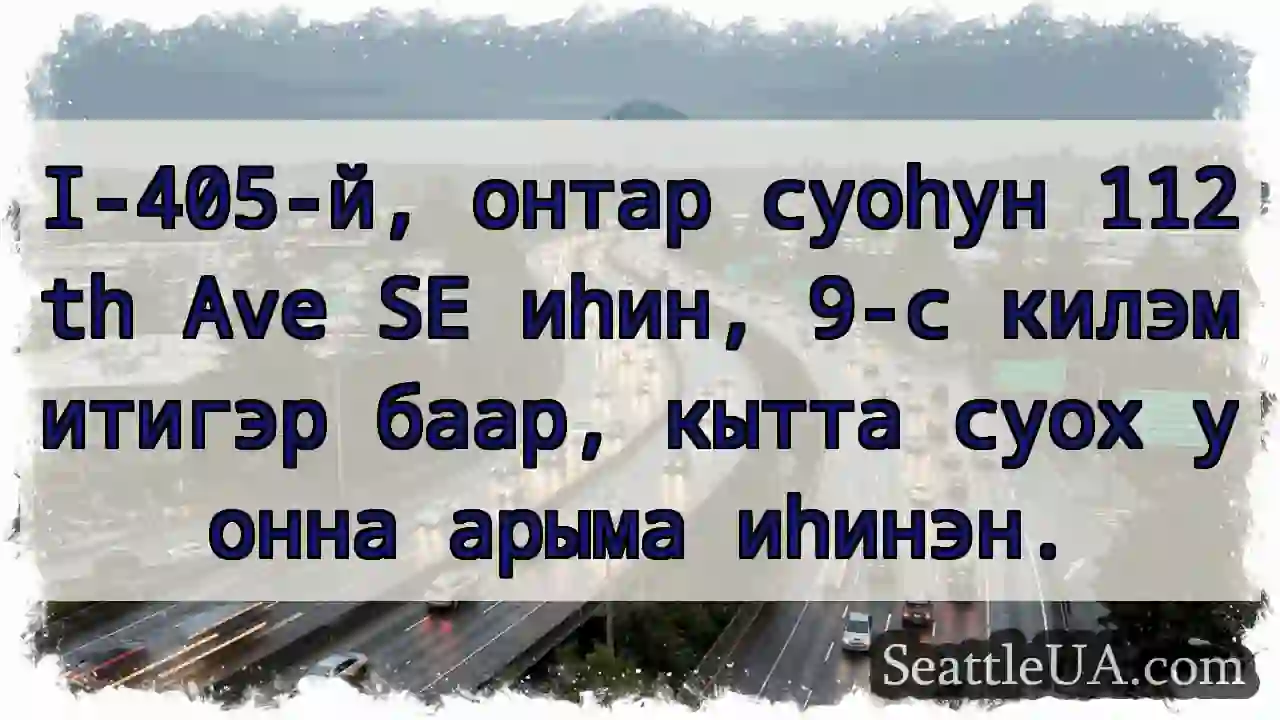 09.12.2025 18:40 Як пересуватися Сіетлом 112th Ave SE, 9km. Арыма уонна киллэр! 112th Ave SE, 9km. Арыма уонна киллэр! I-405-й, онтар суоһун 112th Ave SE иһин, 9-с килэмитигэр баар, кытта суох уонна арыма иһинэн. Останні новини 112th Ave SE, 9km. Арыма уонна киллэр! SR 99: Uzávěr pruhů! 18:30 u 1st Ave S. I-5 tıqqan! Mercer şt. üstündä. I-5 sūthbōndē. MP 176. Tōgō lānē. Tıxayış! I-90 şimalda 12 km. I-5, t’loth s’ulon… Interurban (MP 156) Вашингтон: Атмосферний струмінь! Sadursme! 36th St un Phinny Ave N. Uzmanība! Уламки на мосту! Обережно! Зіткнення! 24th Ave та Lake City Way.