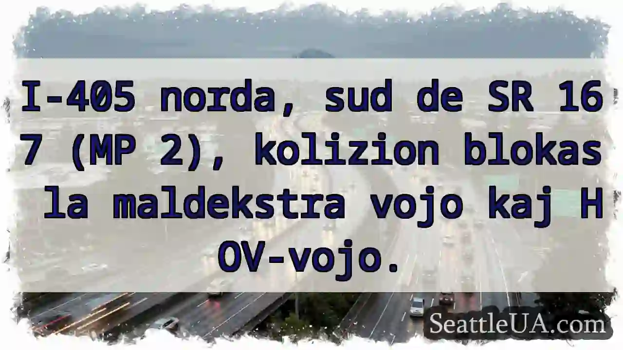 10.12.2025 17:40 Як пересуватися Сіетлом 405 norda: blokas! SR 167 sud. 405 norda: blokas! SR 167 sud. I-405 norda, sud de SR 167 (MP 2), kolizion blokas la maldekstra vojo kaj HOV-vojo. Останні новини 405 norda: blokas! SR 167 sud. SR 99 blokuje sud’nu! Z’orl k’al. Затор на SR 520. Правий бік. Зіткнення I-405! Лівий ряд заблоковано. З’їзд SR 18: Аварія! Перекрито. Увага! Зіткнення на MLK! Очікується масштабні повені на річках західної частини штату Вашингтон прогноз до пятниці 2026. gada beigās – slēgšana! I-5 Nord: Blocaj la km 169! ⚠️ Зіткнення! 39th & Oregon. Обережно!