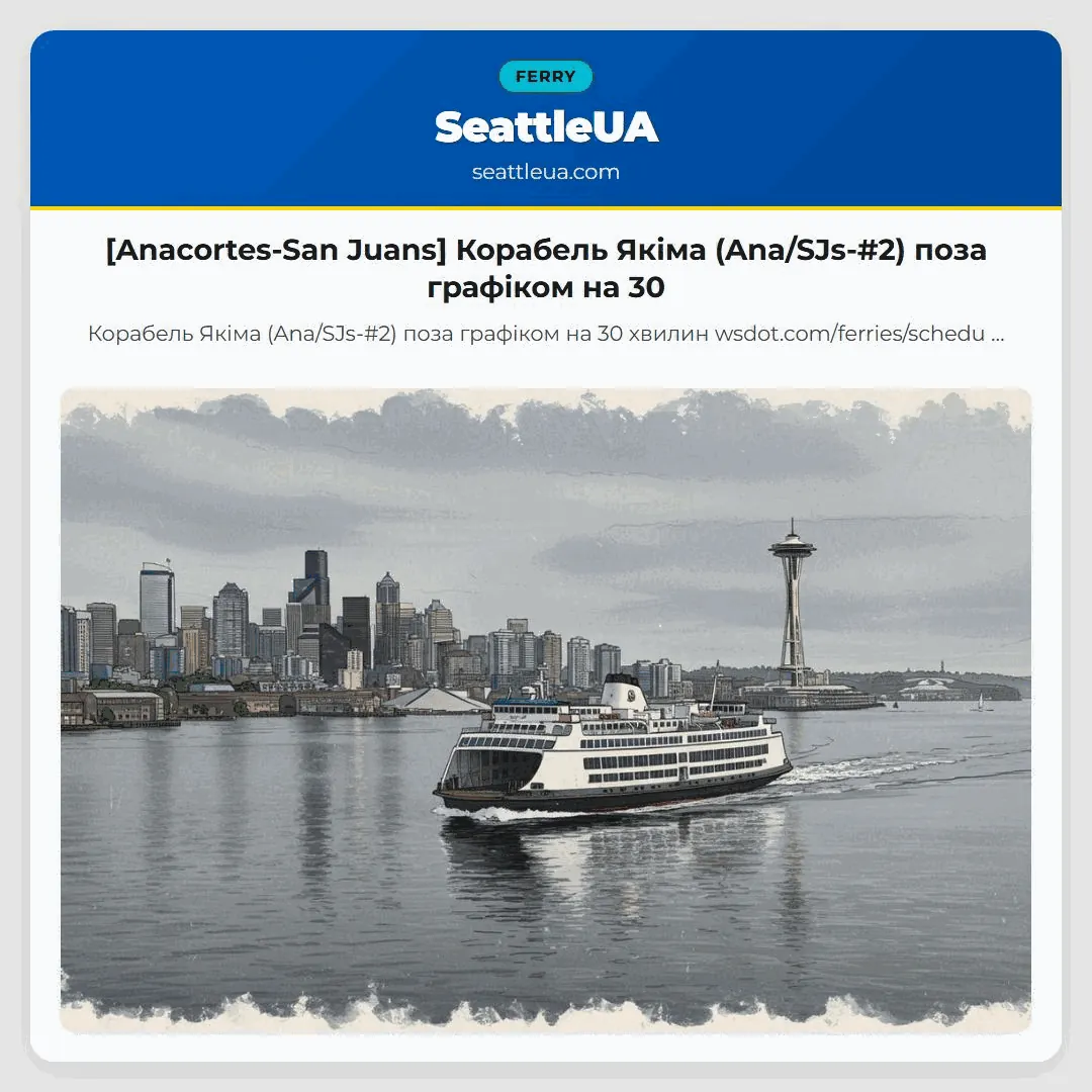 Корабель Якіма (Ana/SJs-#2) поза графіком на 30 хвилин wsdot.com/ferries/schedu …