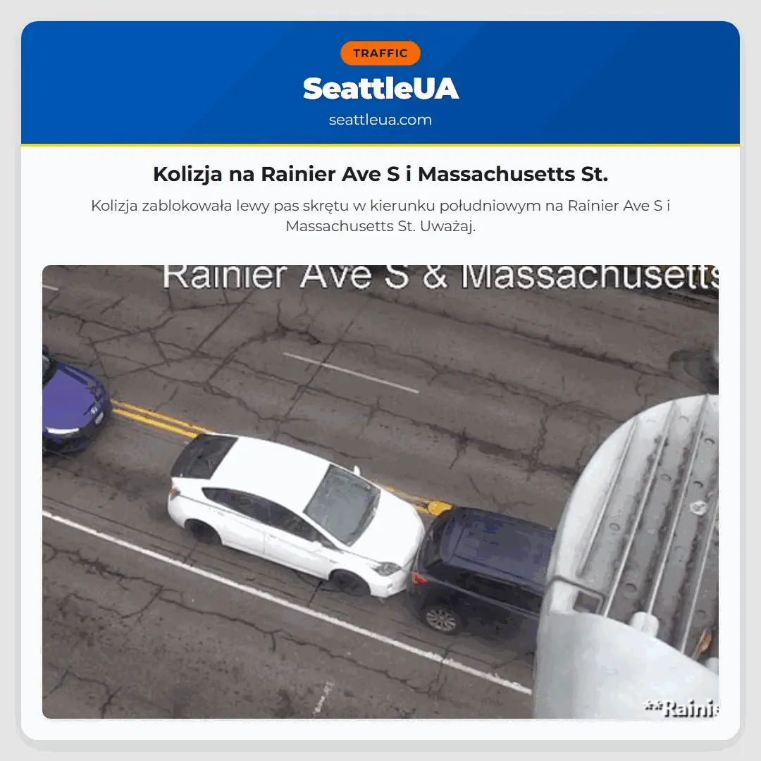 Kolizja zablokowała lewy pas skrętu w kierunku południowym na Rainier Ave S i Massachusetts St. Uważaj.