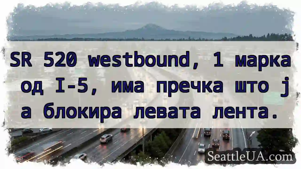 10.12.2025 08:15 Як пересуватися Сіетлом SR 520 Z, пречка! Лева лента затворена. SR 520 Z, пречка! Лева лента затворена. SR 520 westbound, 1 марка од I-5, има пречка што ја блокира левата лента. Останні новини Liūtis! Snohomish, King, Pierce – stipri! SR 900 blokēdī. Suluth tūlī. Keoppleë: Fëshën sëlëbrëtë! 405 Süd: Bloķēts vidējā joslā! I-5: Цæгатæйæн, Northgate Way-æй (173 км) SR 18-n, MP 22-n. Dzhäpän lüvän. 75 vëldë shëndë. Rëshëndë! Ŝtata 530 fermita! Evitu la areon. ʼIskʼaʼn – ʔUʼsʼaʼn leʼ-kʼe. Зіткнення! Права смуга перекрита.