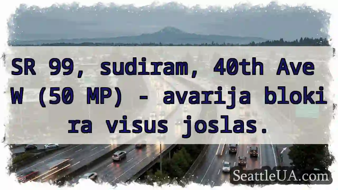 SR 99, sudiram, 40th Ave W (50 MP) – avarija blokira visus joslas.