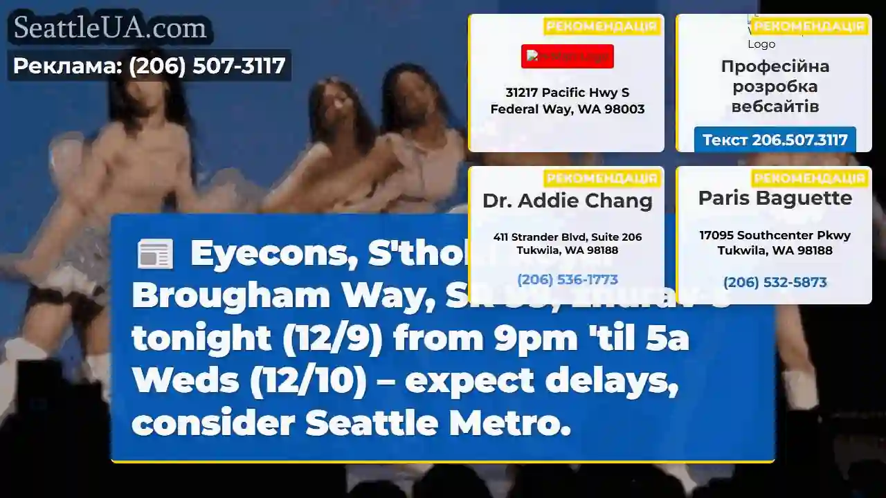 Eyecons, S’thok! Royal Brougham Way, SR 99, zhurav-s tonight (12/9) from 9pm ’til 5a Weds (12/10) – expect delays, consider Seattle Metro.