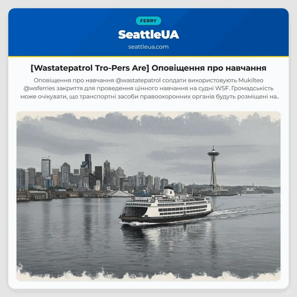 закриття для проведення цінного навчання на судні WSF. Громадськість може очікувати, що транспортні засоби правоохоронних органів будуть розміщені на терміналі Мукілтео в п’ятницю, 6 лютого.