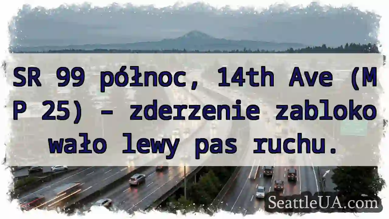 SR 99 północ, 14th Ave (MP 25) – zderzenie zablokowało lewy pas ruchu.